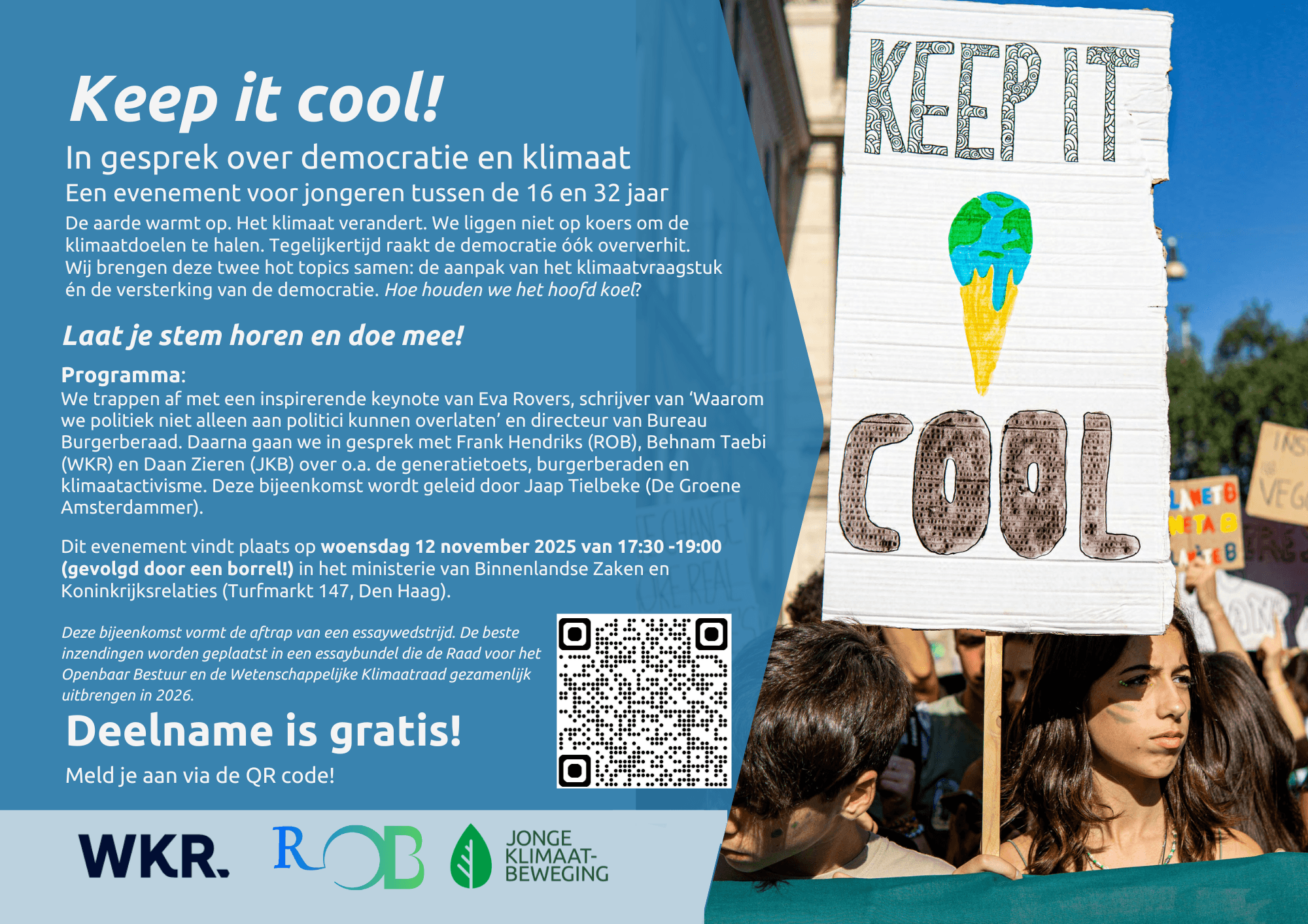 Op 12 november is er een event voor jonge denkers over klimaat en democratie. De aarde warmt op. Het klimaat verandert. We liggen ...