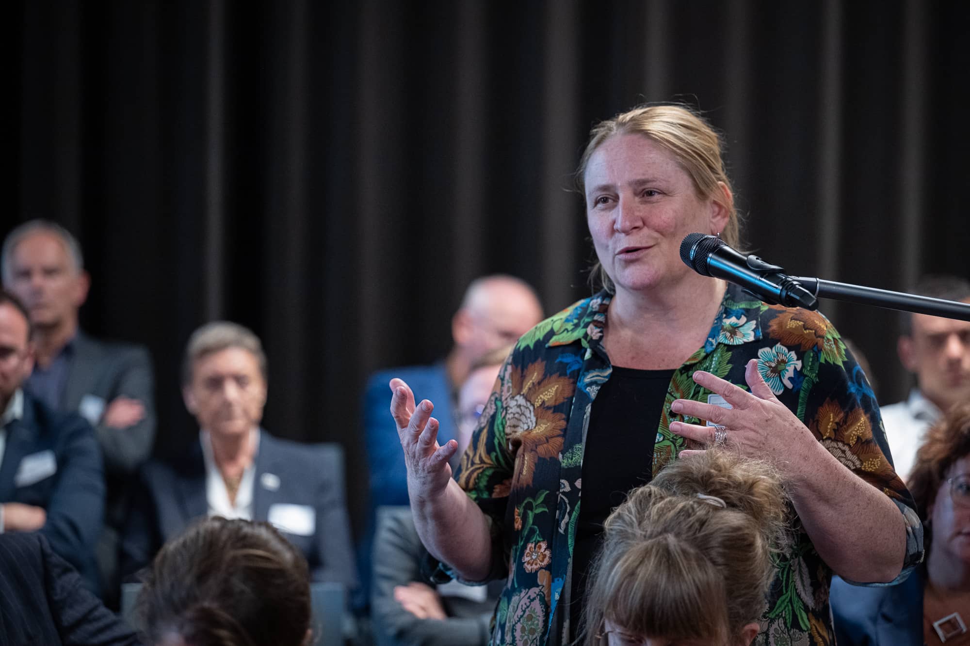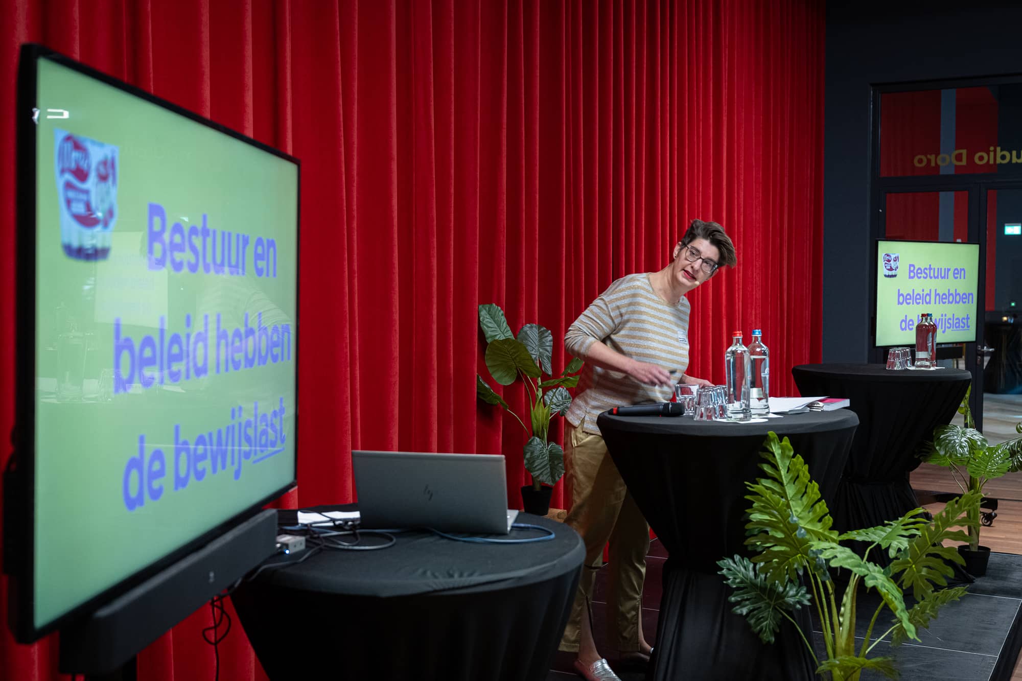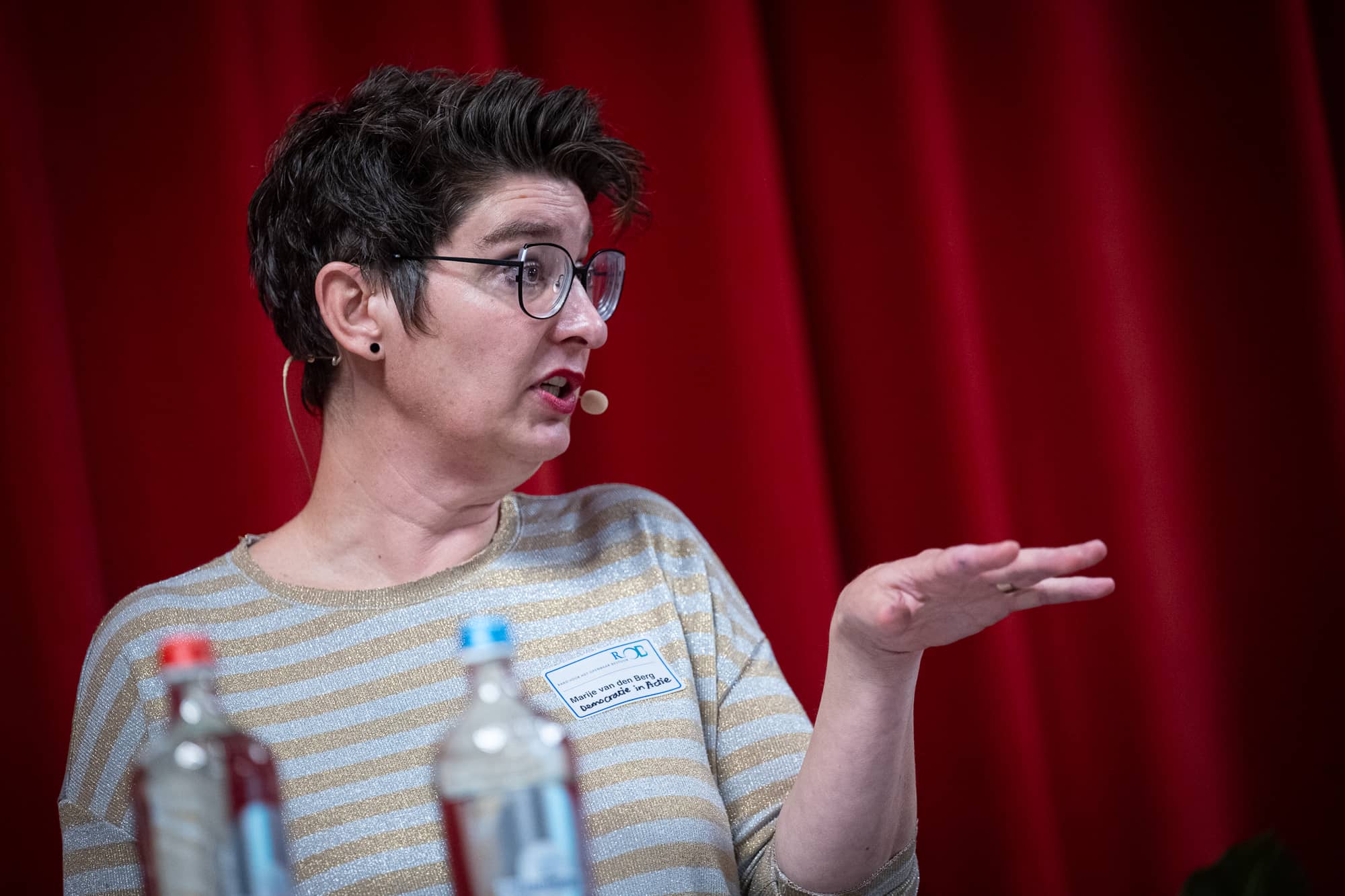 Marije van den Berg (onderzoeker en spreker) gaf een lezing over Beleid in uitvoering, waarbij zij verbetering van de kwaliteit van de democratie belichtte. In vervolg op deze presentatie ging Iris Sluiter hierover in gesprek met Saskia Spapen (programmamanager Ministerie BZK).