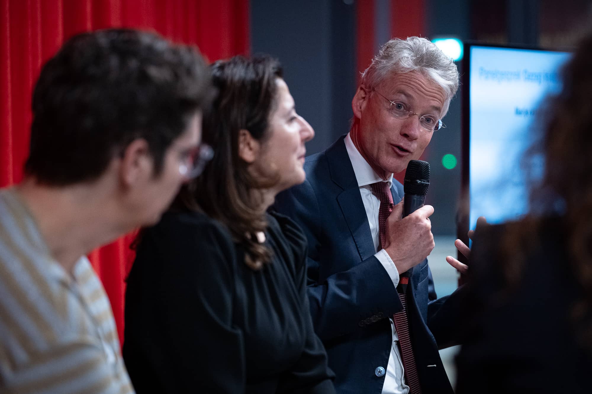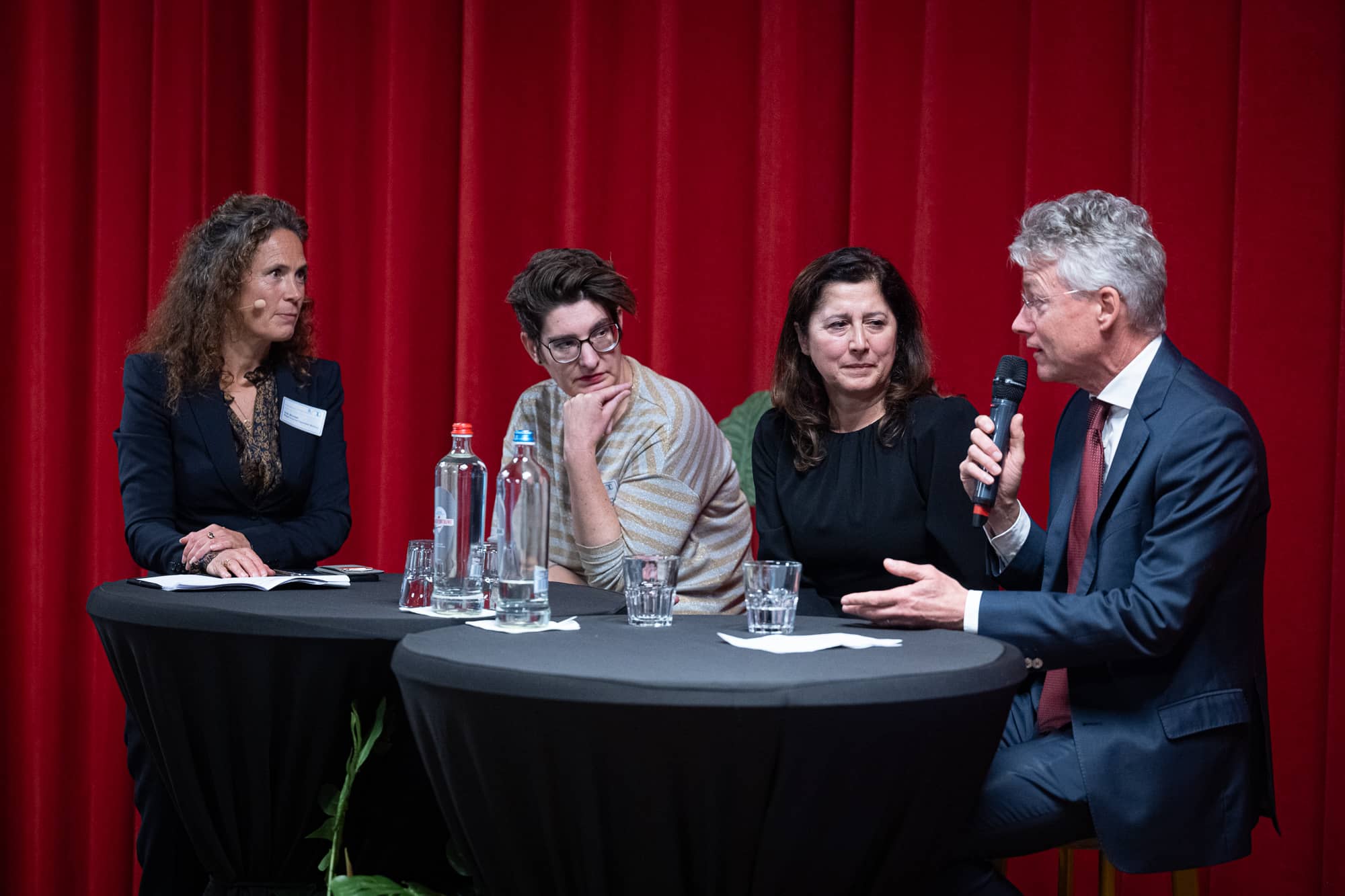Hierna volgde het panelgesprek Gezag in uitvoering met Marije van den Berg, Maarten Camps (voorzitter Raad van Bestuur UWV) en Fatma Koşer Kaya (voorzitter Landelijke Cliëntenraad).