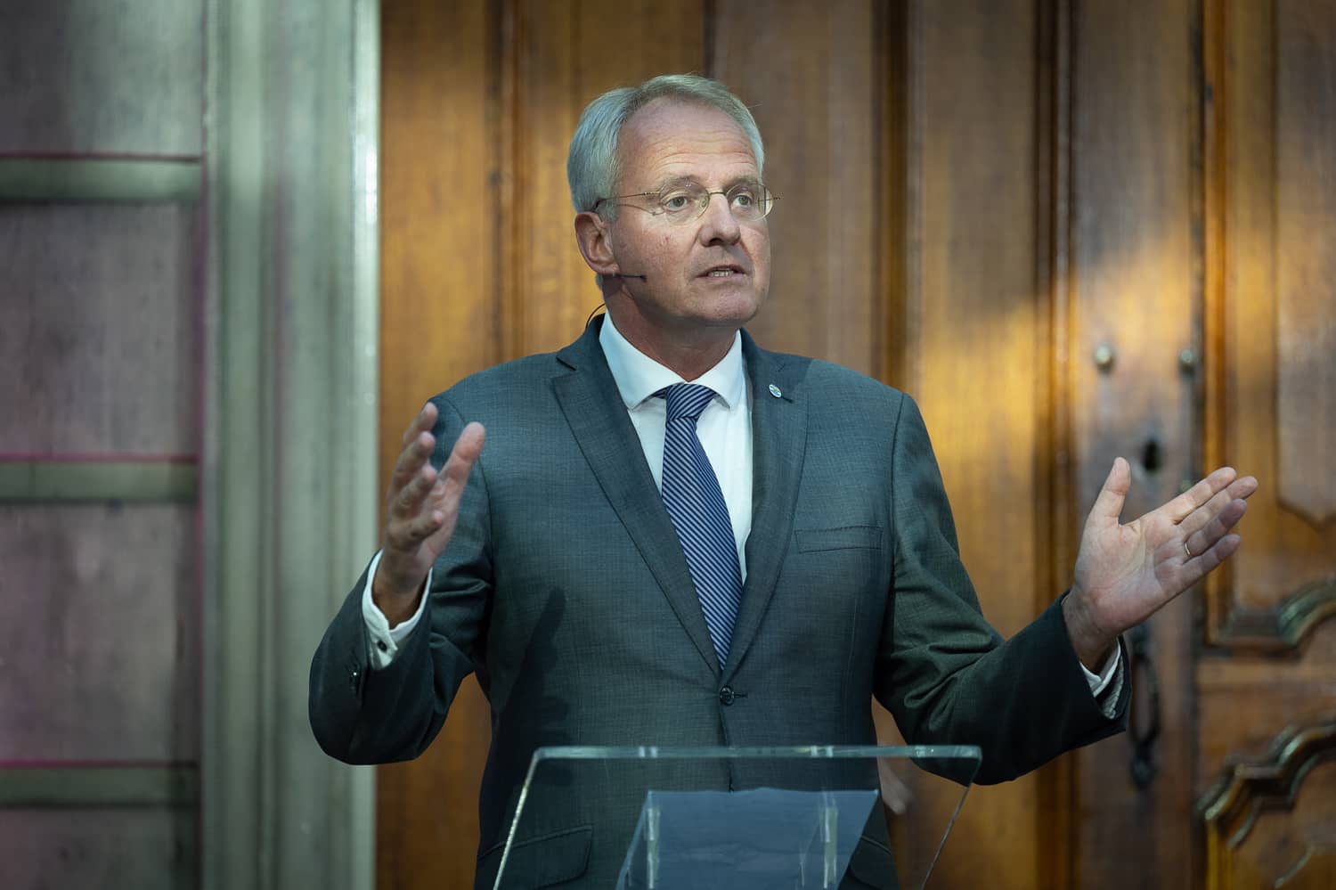 Na het welkomstwoord door voorzitter Han Polman, verzorgde Frank van Ommeren - ROB-raadslid en hoogleraar Staats- en Bestuursrecht aan de Vrije Universiteit Amsterdam - de inleiding op de ROB-lezing.