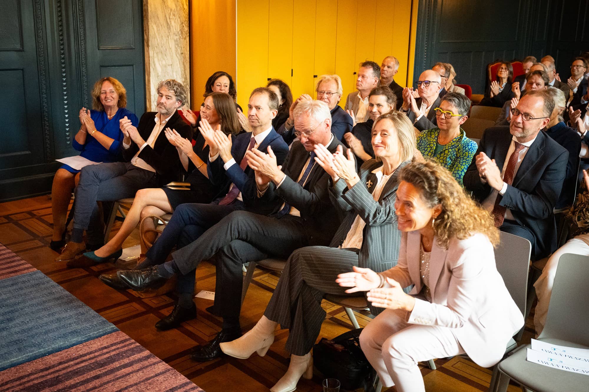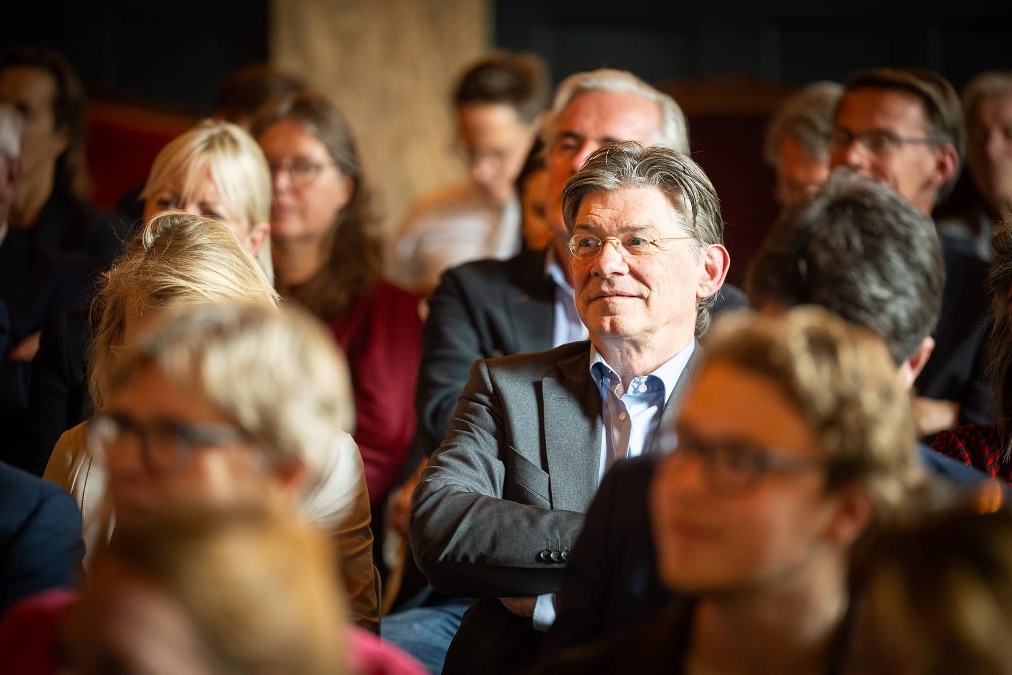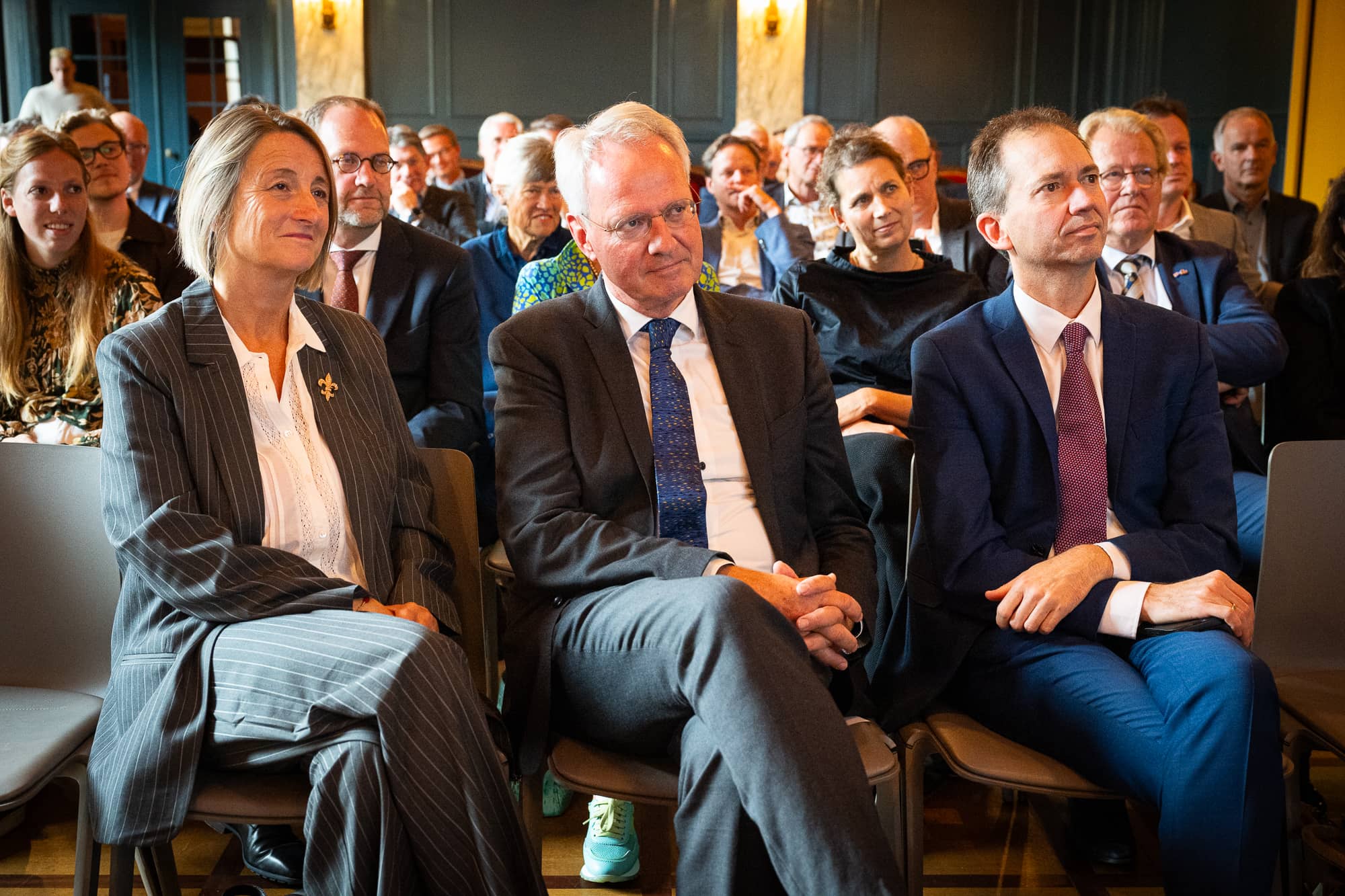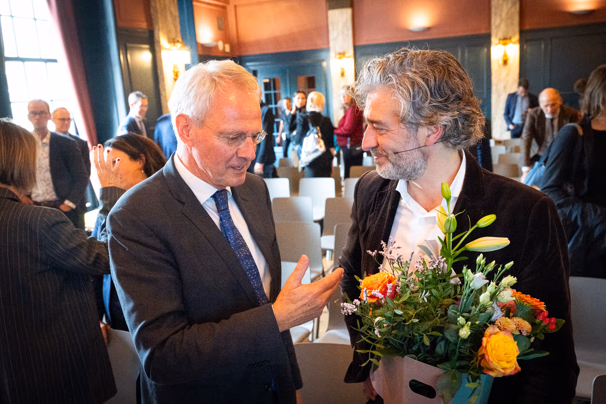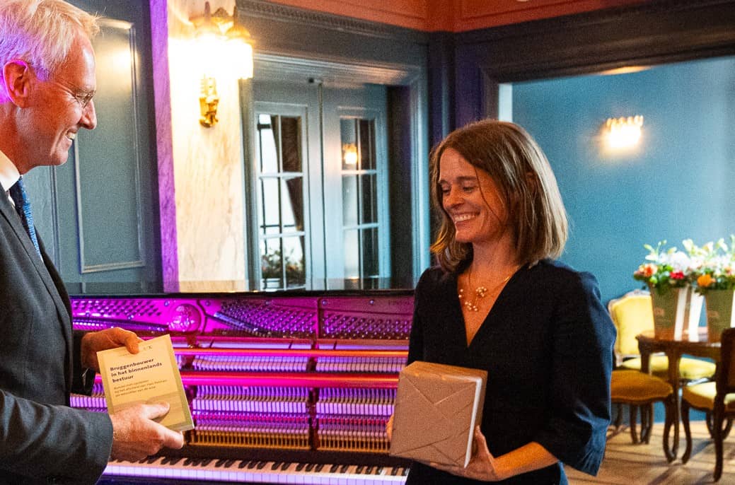 Secretaris-directeur Iris Sluiter opende de bijeenkomst en heette iedereen van harte welkom. Het programma startte met een boeiende lezing van Martijn Groenleer (hoogleraar Bestuurskunde bij Tilburg University, wetenschappelijk directeur van TiREG en gastprofessor aan Harvard), met als thema ‘Op zoek naar verbinding: Relatietherapie voor het Openbaar Bestuur (ROB)'. Daarna zoomde Liesbeth Spies (burgemeester van Alphen aan den Rijn en voorzitter van het Nederlands Genootschap van Burgemeesters) op aansprekende wijze in op het actuele onderwerp 'Zonder verbinding geen gezag’. Vervolgens richtte Arne van Hout (directeur-generaal Openbaar Bestuur en Democratische Rechtsstaat BZK) zich met een mooi woord van dank tot Han. Het Erik Verwey Trio zorgde voor sfeervolle muzikale intermezzo's. Tot slot overhandigde vice-voorzitter Caelesta Braun Han het eerste exemplaar van de essaybundel die ter ere van zijn afscheid is verschenen en sloot de bijeenkomst af.