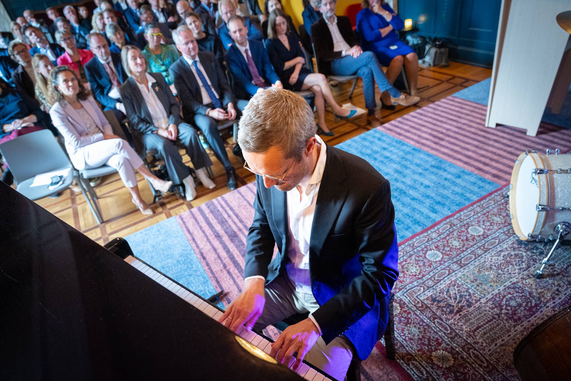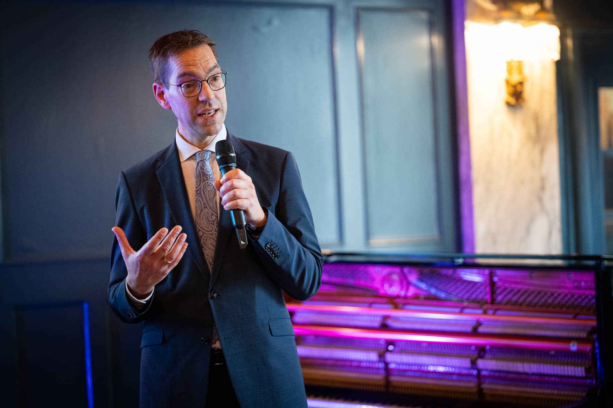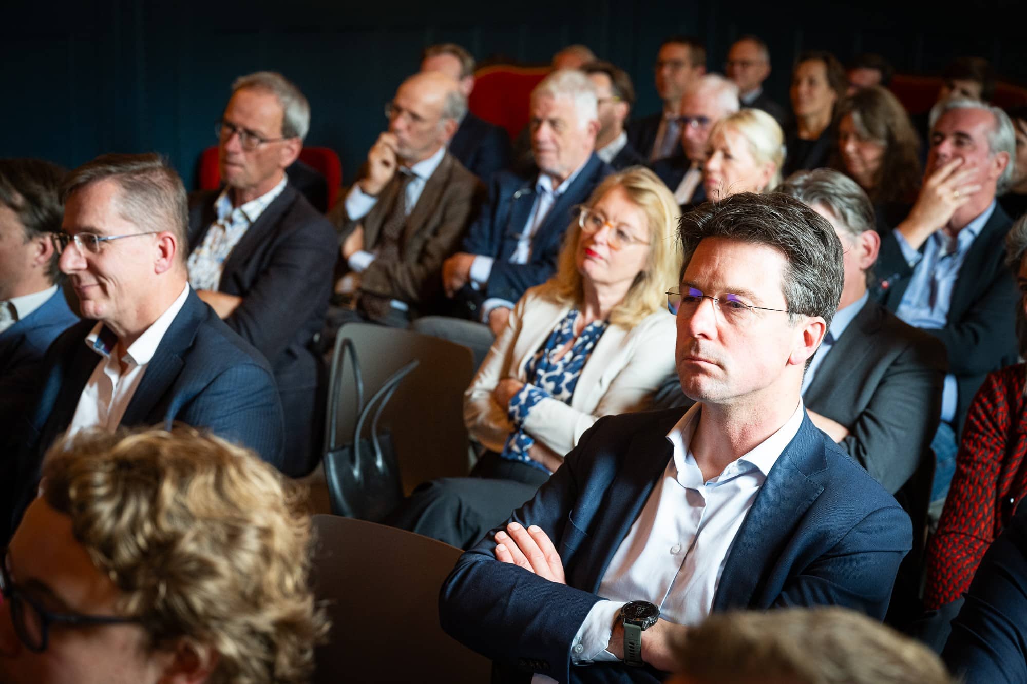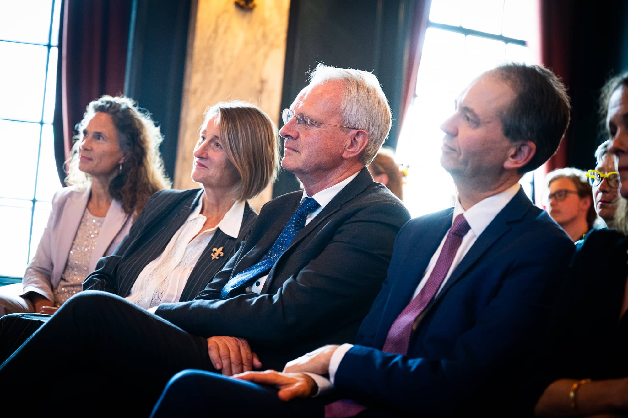 Secretaris-directeur Iris Sluiter opende de bijeenkomst en heette iedereen van harte welkom. Het programma startte met een boeiende lezing van Martijn Groenleer (hoogleraar Bestuurskunde bij Tilburg University, wetenschappelijk directeur van TiREG en gastprofessor aan Harvard), met als thema ‘Op zoek naar verbinding: Relatietherapie voor het Openbaar Bestuur (ROB)'. Daarna zoomde Liesbeth Spies (burgemeester van Alphen aan den Rijn en voorzitter van het Nederlands Genootschap van Burgemeesters) op aansprekende wijze in op het actuele onderwerp 'Zonder verbinding geen gezag’. Vervolgens richtte Arne van Hout (directeur-generaal Openbaar Bestuur en Democratische Rechtsstaat BZK) zich met een mooi woord van dank tot Han. Het Erik Verwey Trio zorgde voor sfeervolle muzikale intermezzo's. Tot slot overhandigde vice-voorzitter Caelesta Braun Han het eerste exemplaar van de essaybundel die ter ere van zijn afscheid is verschenen en sloot de bijeenkomst af.