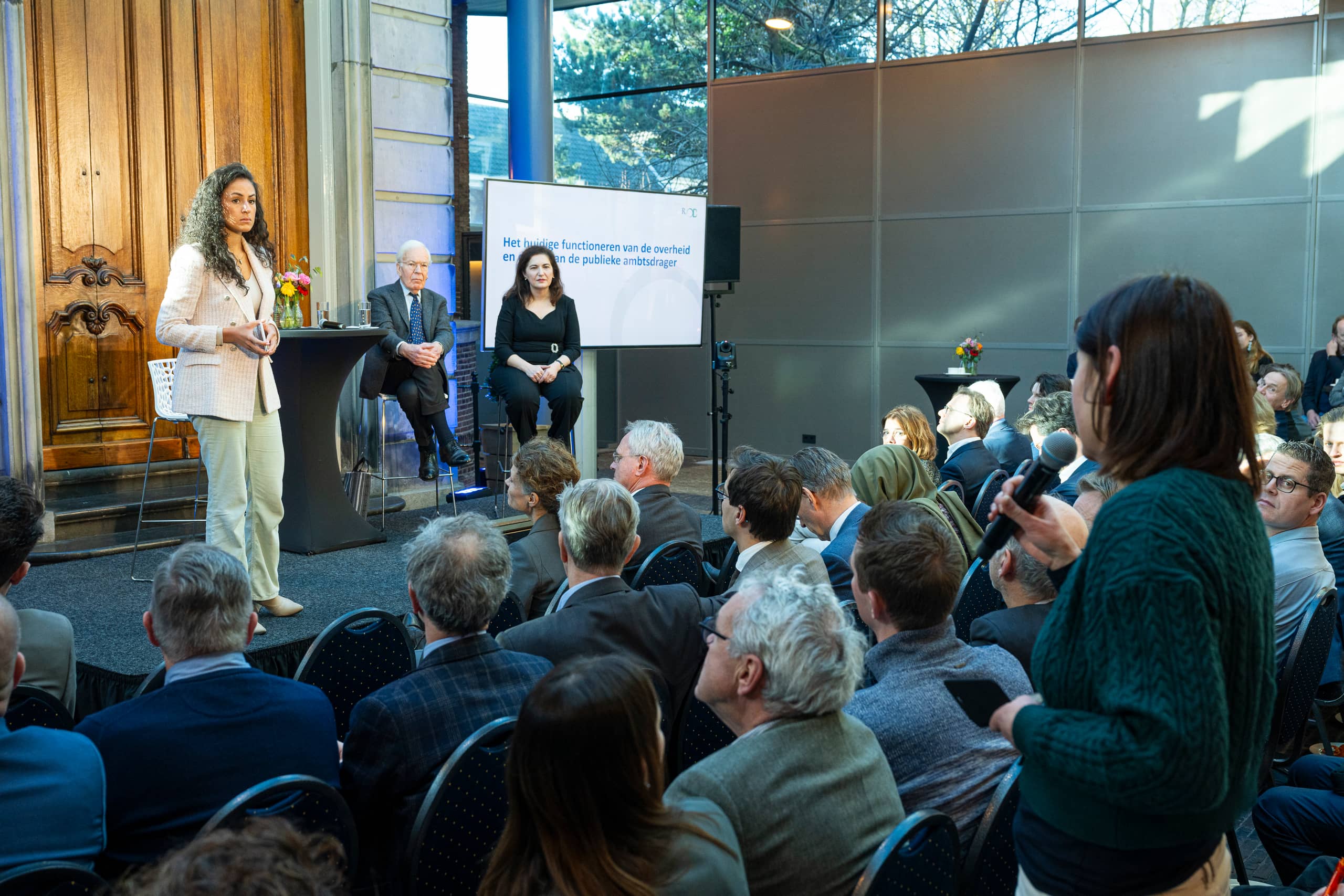 Na het welkomstwoord door Han Polman (ROB-voorzitter en Commissaris van de Koning in Zeeland) deelden Herman Tjeenk Willink (Minister van Staat) en Huri Sahin (burgemeester van de gemeente Rijswijk en ROB-raadslid) hun perspectief vanuit verschillende generaties, achtergrond en ervaring. Onder leiding van Yasmin Ait Abderrahman gingen zij met de aanwezigen in gesprek.