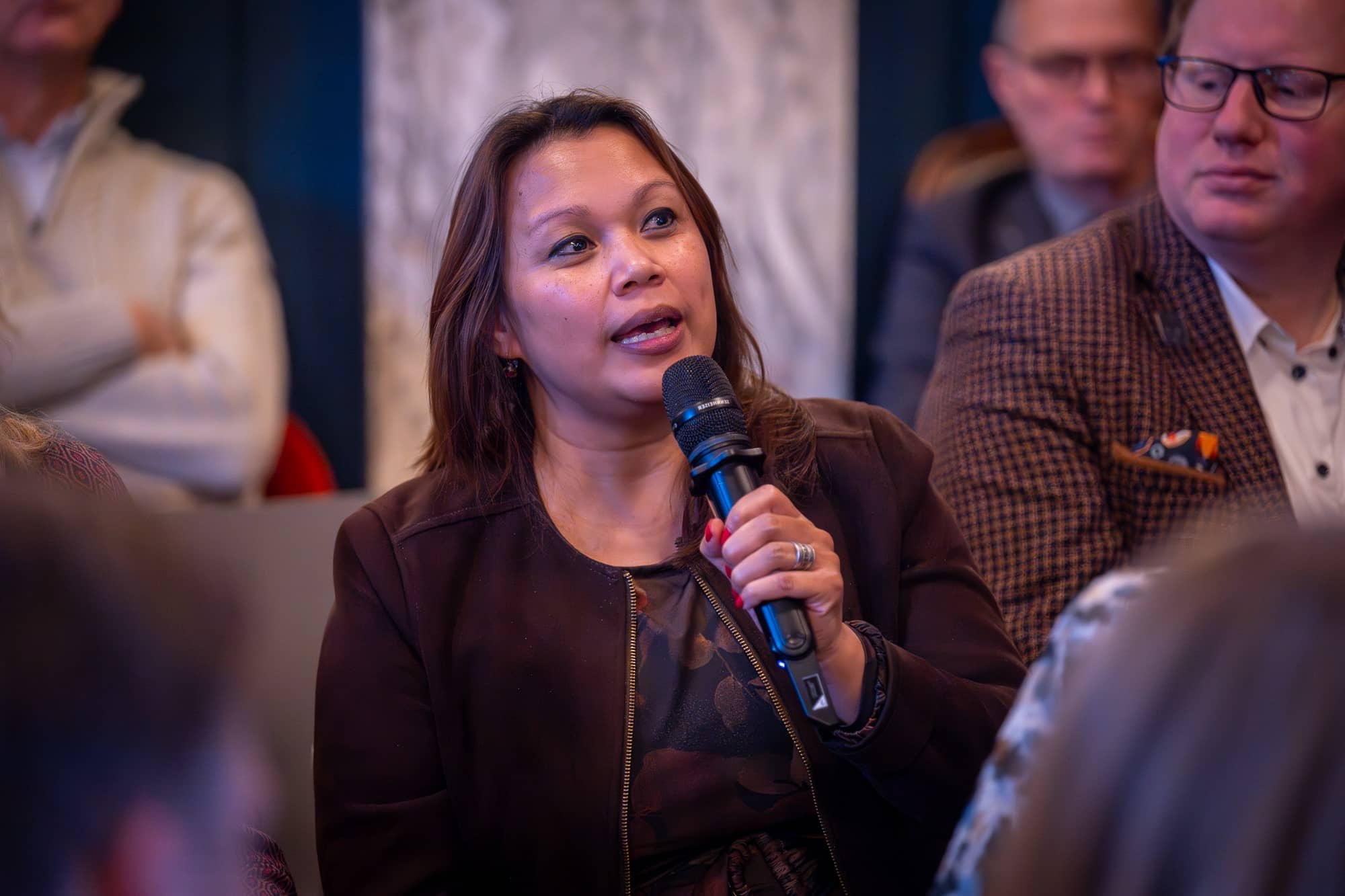 In haar reactie op deze vraag benadrukte Karen dat ook het Draghi-rapport sociale inclusiviteit benoemt als voorwaarde voor een sterke economie. Ze erkende dat we allerlei ontwikkelingen in de samenleving zien die negatief zijn, maar wees er tegelijkertijd op dat er voorbij dat beeld ook veel mooie initiatieven ontstaan. Juist op decentraal niveau ziet zij hele goede voorbeelden, en dat stemt haar positief. Daarbij deed zij een duidelijke oproep aan Den Haag: durf de macht een beetje uit handen te geven. Durf dingen los te laten en accepteer dat niet alles zal slagen. Volgens Karen hebben we vergaande controlemechanismen en verantwoordingskaders ontwikkeld die niet zijn opgewassen tegen dit soort vraagstukken. We zullen moeten gaan nadenken over wat voor type verantwoording past bij sociale initiatieven. Daar ligt een grote opdracht voor het openbaar bestuur: wacht niet tot de politiek je oproept om dit te doen, maar ga zelf aan de slag.