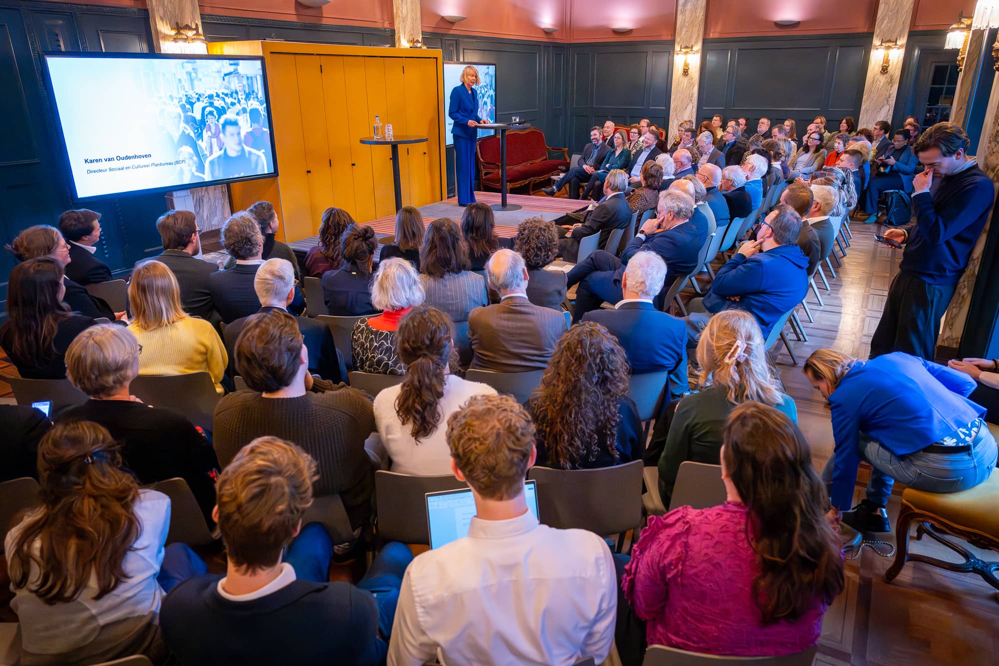 Daarna bracht Pim van den Dool (bestuurslid Nationale Jeugdraad), het perspectief van jongeren voor het voetlicht. Hij schetste hoe divers die groep is, maar ook hoeveel er tegelijk op deze generatie afkomt. Jongeren groeien op met de nasleep van corona, zorgen over klimaat en geopolitieke spanningen, en met heel concrete persoonlijke vraagstukken zoals bestaanszekerheid en toekomstperspectief. Veel jongeren zijn financieel ongezond, ondanks dat zij hard werken. De wooncrisis, de hoge kosten van studeren en baanonzekerheid maken hun positie extra kwetsbaar.