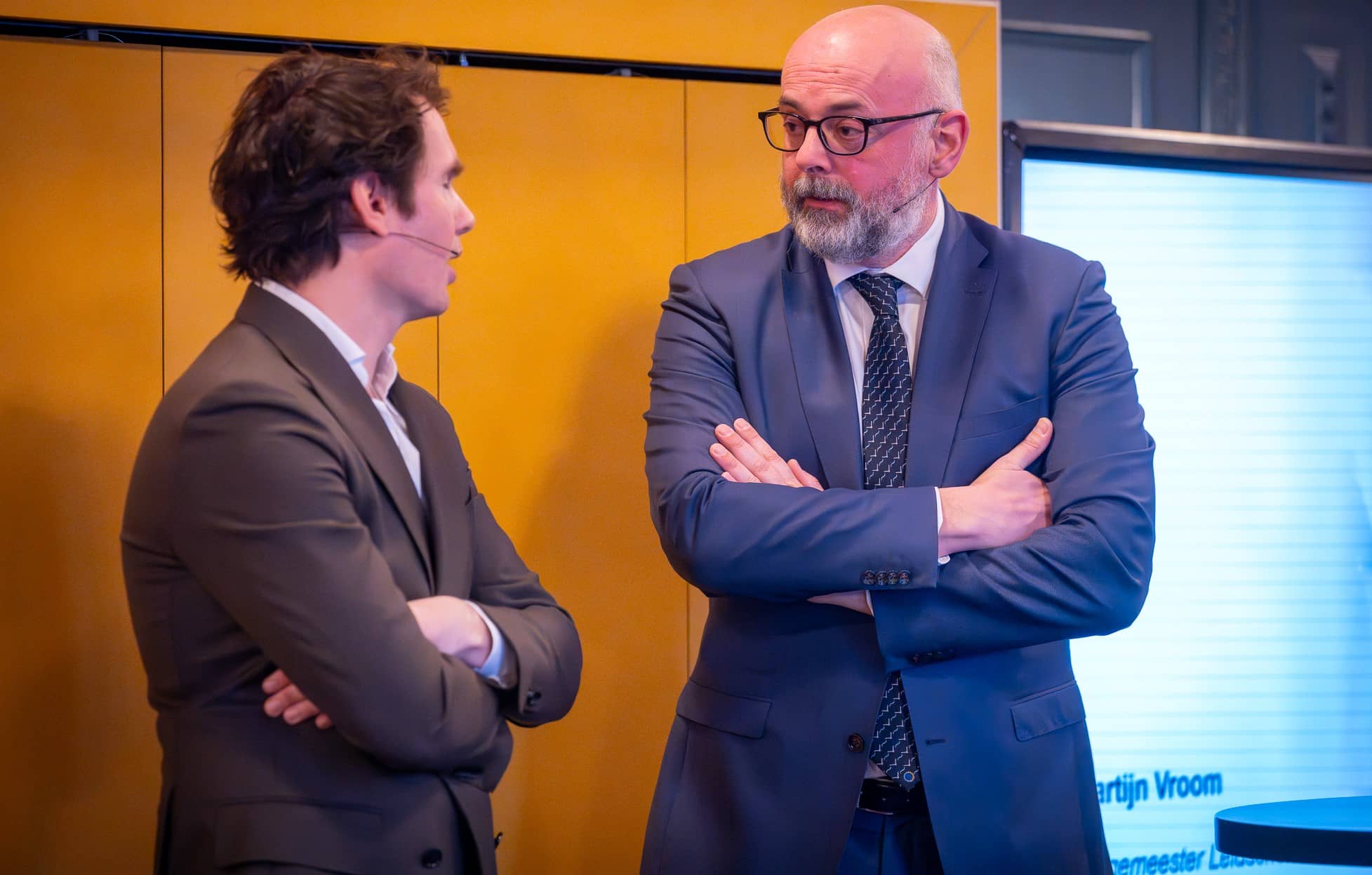 Martijn Vroom (burgemeester Leidschendam-Voorburg) nam het stokje over en gaf een concreet voorbeeld van hoe gemeenten werken aan maatschappelijke weerbaarheid: de pilot in zijn gemeente voor het opzetten van noodsteunpunten, in samenwerking met onder andere de GGD, brandweer, politie, huisartsen en andere maatschappelijke partners. Daaruit blijkt dat er al veel gebeurt in de samenleving, vaak meer dan we doorhebben, en dat bestaande netwerken en professionals een belangrijke rol spelen. Zo merkte hij op dat huisartsen vaak al goed voorbereid zijn op verschillende scenario’s zoals stroomuitval, en dat zij een duidelijk beeld hebben van kwetsbare mensen in hun praktijk en periodiek huisbezoeken afleggen.